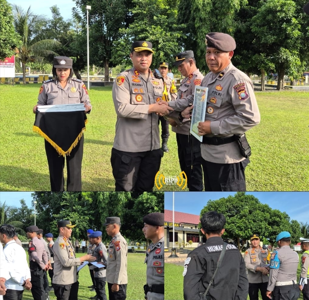 Pemberian penghargaan dilaksanakan setelah apel pagi yang berlangsung di Lapangan apel Polres Halmahera Utara.